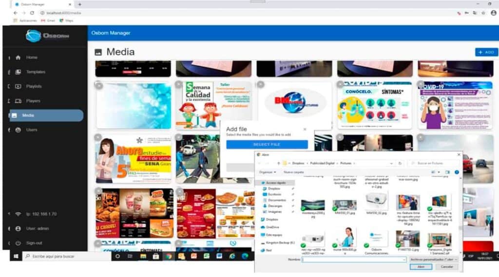 Monitores de uso industrial o pantallas tradicionales con reproductor PrimeLink. (cliente)